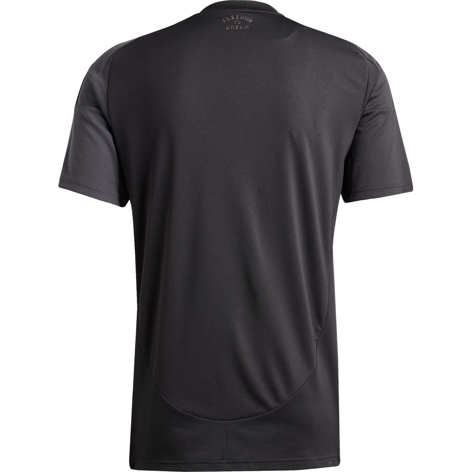 The 2025 Inter Miami Away jersey features a sleek design in black and dark grey.